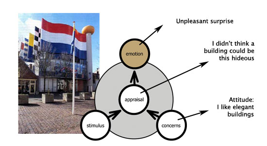 In our previous post How do emotions work? – Basic model of emotions we explained that people differ in their emotional responses towards a given building. Nevertheless, in spite of these interpersonal differences, the process of emotion, i.e. the way in which emotions are elicited, is universal. There is a basic process model of emotions. This model describes the eliciting conditions of emotions with the use of three underlying key variables: appraisal, concern and stimulus.